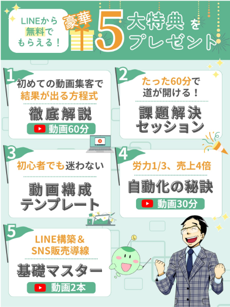登録特典: LINE登録後すぐに、YouTube経由で600万円以上の売上を上げた「自動化の導線設計図」を無料プレゼント中!